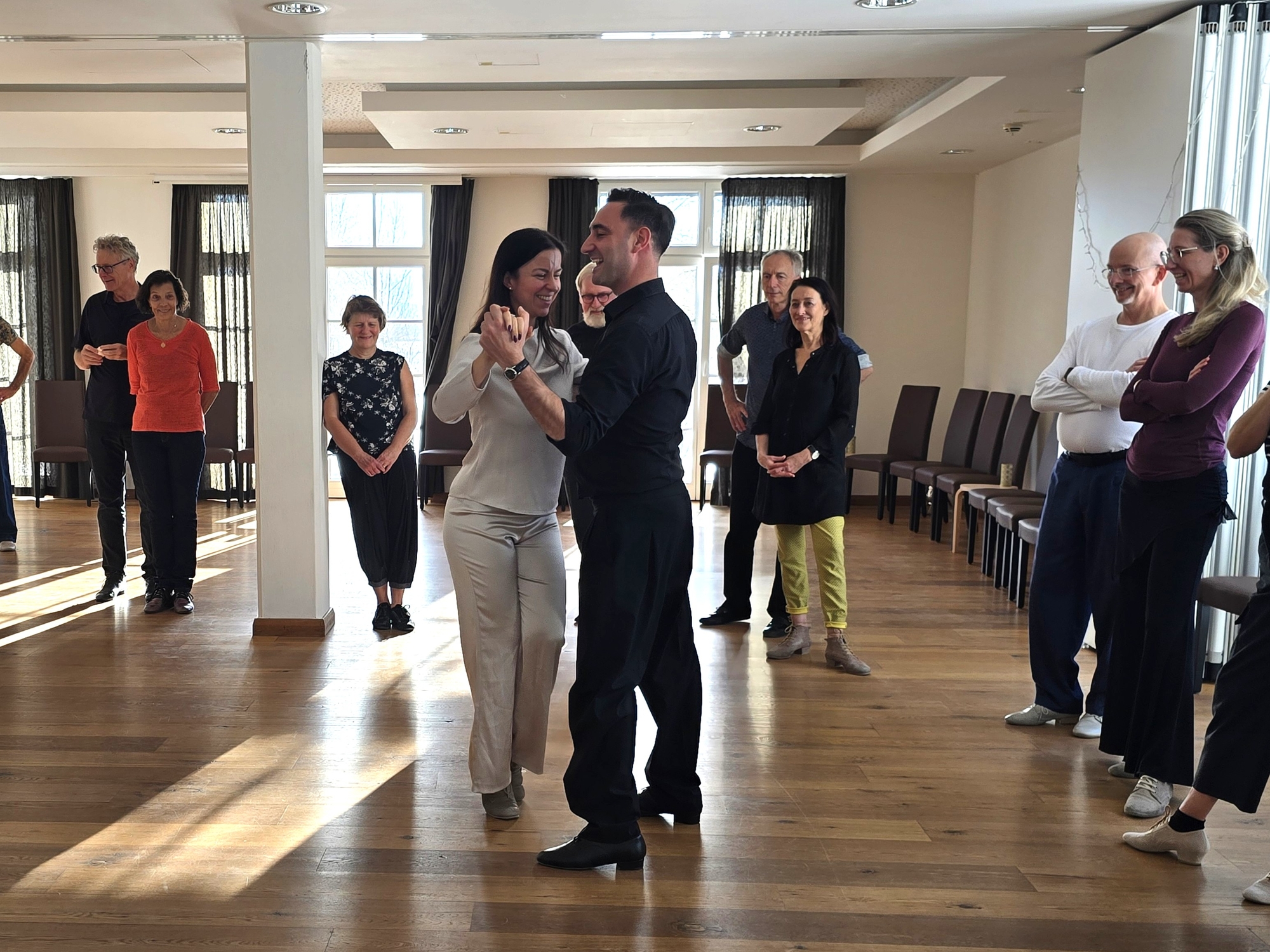 Fausto & Stephanie vermitteln Technik für stabile Achsen, saubere Pivots und ein müheloses Zusammenspiel von Führung und Folge.